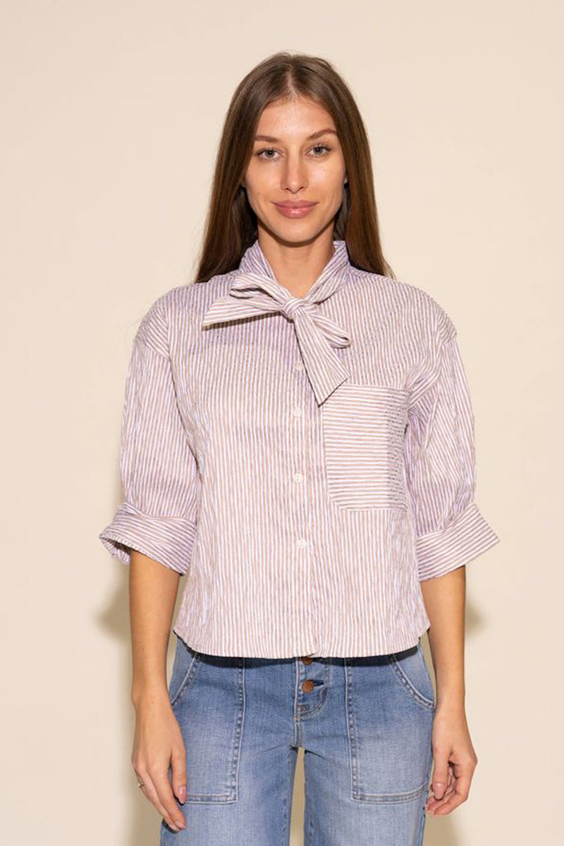 Amy Top - Tan/White Stripe
